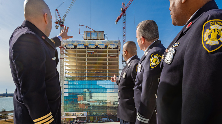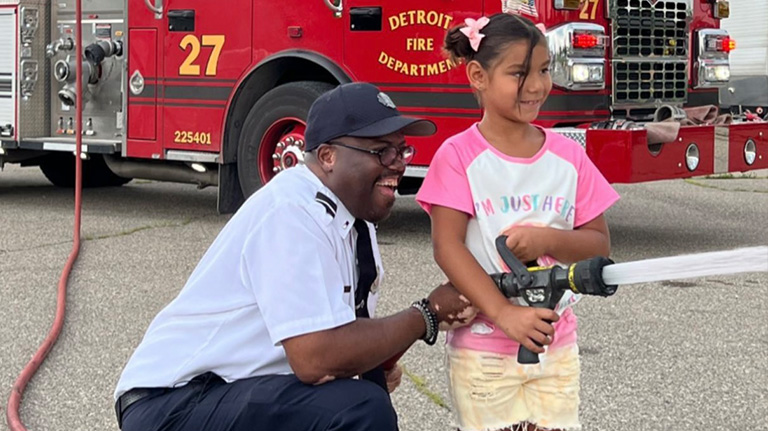 এক্সিকিউটিভ ফায়ার কমিশনার চাক সিমসের নেতৃত্বে, ডেট্রয়েট ফায়ার ডিপার্টমেন্ট ডেট্রয়েটের বাসিন্দা এবং দর্শনার্থীদের জীবন, সম্পত্তি এবং মঙ্গল রক্ষা করতে প্রতিশ্রুতিবদ্ধ। নিবেদিতপ্রাণ পরিষেবা, দ্রুত জরুরি প্রতিক্রিয়া, অগ্নি প্রতিরোধ এবং জনশিক্ষার মাধ্যমে, আমরা আমাদের সম্প্রদায়ের জন্য সর্বোচ্চ স্তরের নিরাপত্তা নিশ্চিত করার জন্য প্রচেষ্টা করি। সাহস, পেশাদারিত্ব এবং সততার সাথে, আমরা জীবন বাঁচাতে, ঝুঁকি কমাতে এবং শ্রেষ্ঠত্বের আমাদের গর্বিত ঐতিহ্যকে ধরে রাখতে একটি দল হিসেবে কাজ করি।